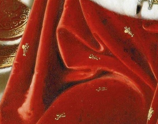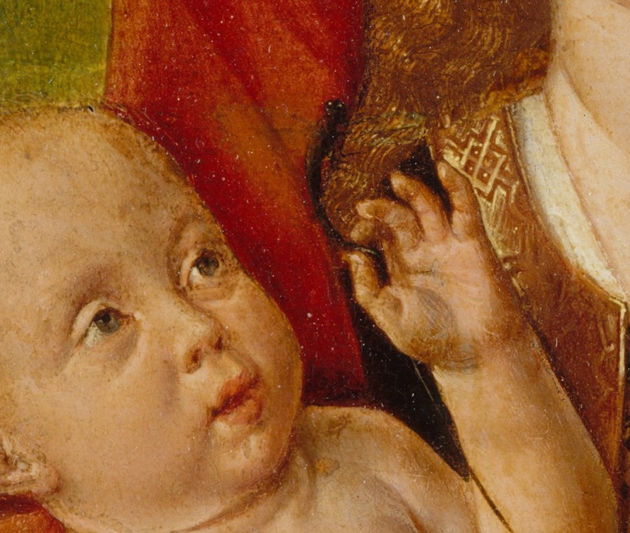The Virgin Mary lovingly looks down at Christ, but then—what is that? Is Christ firmly holding onto a thread which in turn has trapped a dragonfly? It may seem odd to the modern viewer, but the Master of Saint Giles knew that Medieval viewers would associate the dragonfly with Satan. Therefore, with Christ keeping a hold on it, this demonstrates his triumph over Satan.