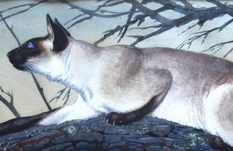 Charles Frederick Tunnicliffe, Siamese Cat (left), Siamese Cat Sitting Amongst Grasses (right). The Great Cat.