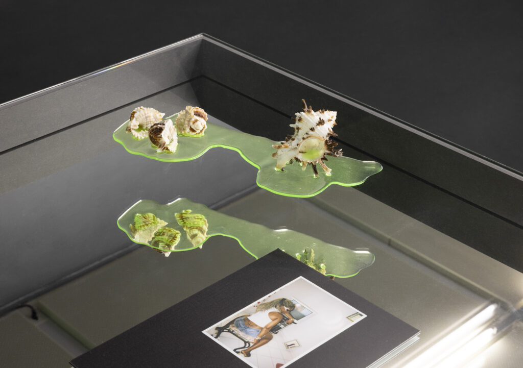 In this installation, Christelle Oyiri puts a spotlight on the reality of once-vacation destinations Guadeloupe and Martinique. A pesticide called chlordecone was used in banana plantations on both islands from 1972 to 1993 long after the banning of the chemical in the US and Europe in the 1970s, which resulted in long-lasting health problems for the residents. The stark difference between the two images linked to the islands “explores themes of colonial alienation and alternative temporalities”, as the gta exhibitions website states, which are the themes the artist employs in her practice.
