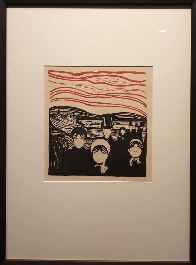 Many of the prints in the exhibition come from the Frieze of Life. It is a series of images that Munch worked on throughout his life and that came together to serve a single idea in 1918. From then on, the series was curated by Munch till the end of his career. You can read more about it here.