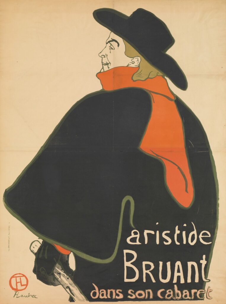 Bruant started his career performing in café-concerts, where he developed a blend of singing and comedy that eventually earned him a spot at the famous Le Chat Noir club. He quickly became a standout figure in Montmartre’s vibrant nightlife. When Henri de Toulouse-Lautrec began frequenting the cabarets, Bruant became one of the first performers the artist chose to feature in his now-iconic posters.