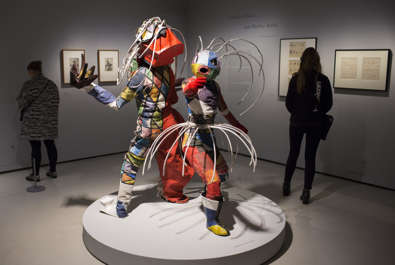 Installation view featuring Minya Diez-Dührkoop, Tanzmaske ‘Toboggan Frau’ and ‘Toboggan Mann’ Lavinia Schulz, 1924 © John Phillips / Getty Images