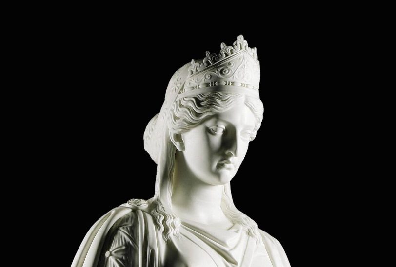 Hosmer’s depiction takes into consideration but deviates from canonical descriptions of the queen in Augustan history. In contrast to typical mid-19th century classical sculptures of captive women portrayed naked and in shackles, Hosmer’s Zenobia is dignified, fully dressed rather than a defeated feeble victim.