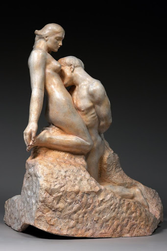 A nude woman, on her knees with her hips thrust forward. A nude man, also on his knees but below her, presses his body against her as he reverently kisses her. The 19th-century French sculptor Auguste Rodin was known for his highly naturalistic and emotional approach of skillfully shaping the human body. This plaster sculpture was made in 1890 and had a bronze cast in 1891. It was then commissioned to be carved in marble in 1893. It’s full of erotic ecstasy and adoration, making it clear why other versions were made so quickly.