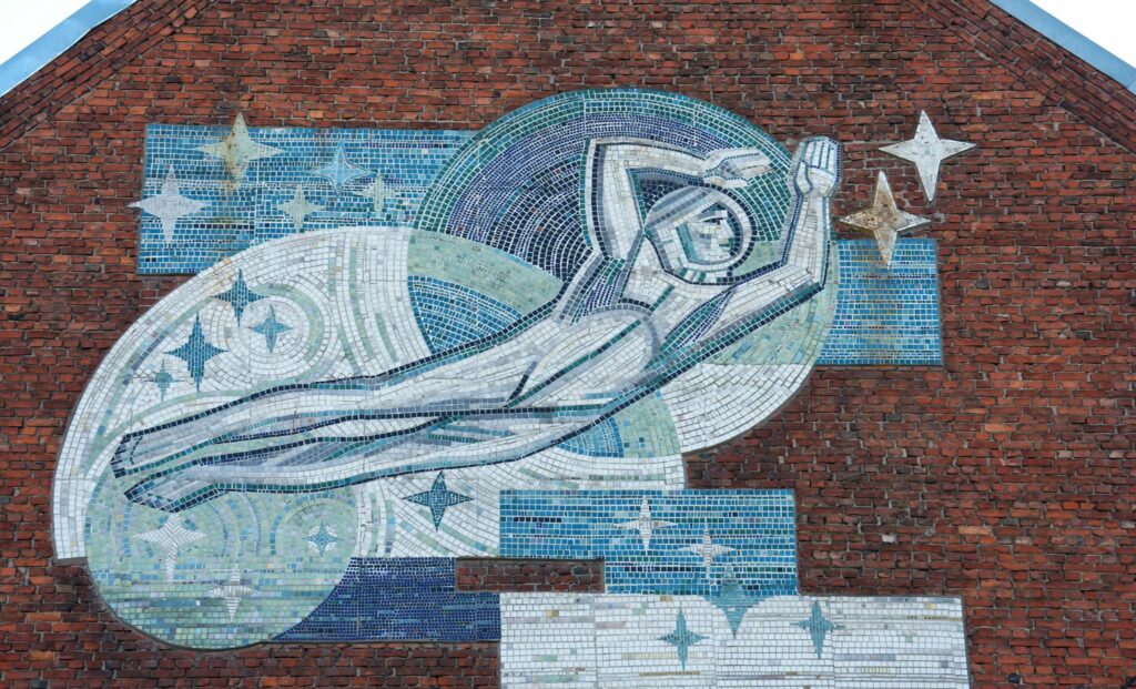 The first title of this mosaic was 55th Anniversary of the USSR. The grandiose 530 metres² panel shows the main milestones of Soviet history. These range from the October Revolution to Gagarin’s flight into space and the construction of the AvtoVAZ factory. Korolev’s work also illustrates the main purpose of Soviet mosaics which is to commemorate great historical events. Regrettably, the mosaic is currently in a very bad state despite several attempts at restoration which have taken place since 2015.